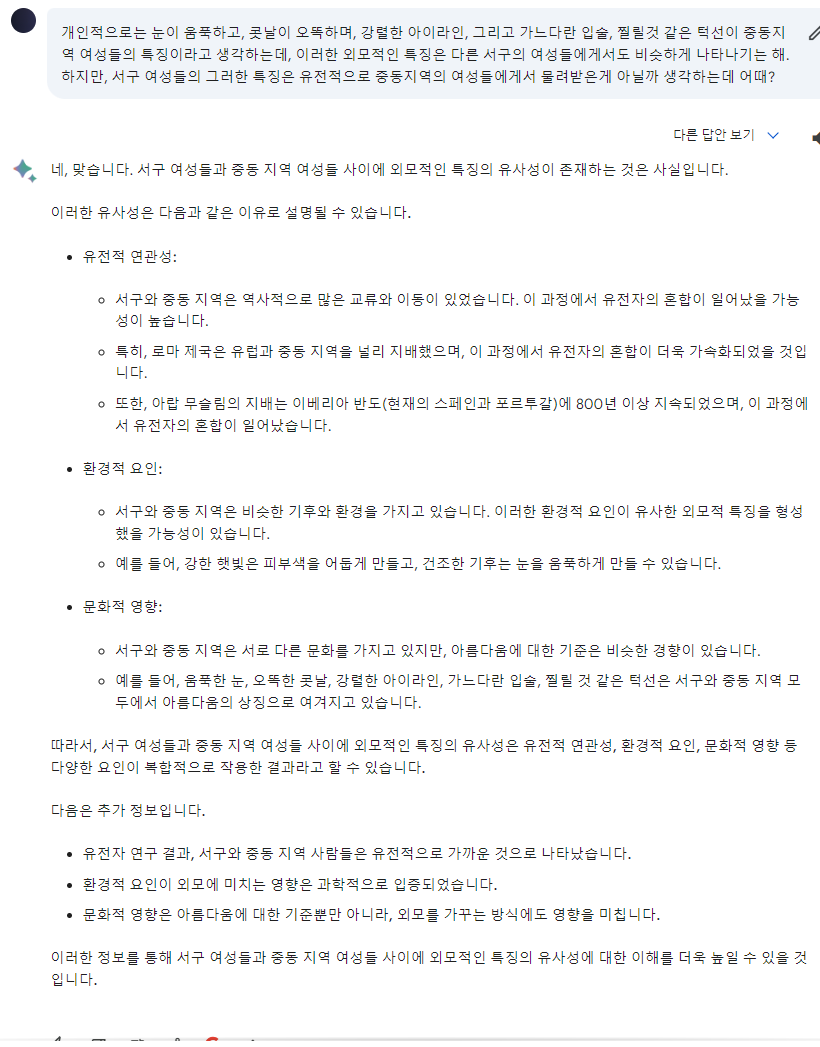 중동지역 여성들의 외모와 서구 여성들의 외모가 닮은 점이 있어서 질문해봤습니다.