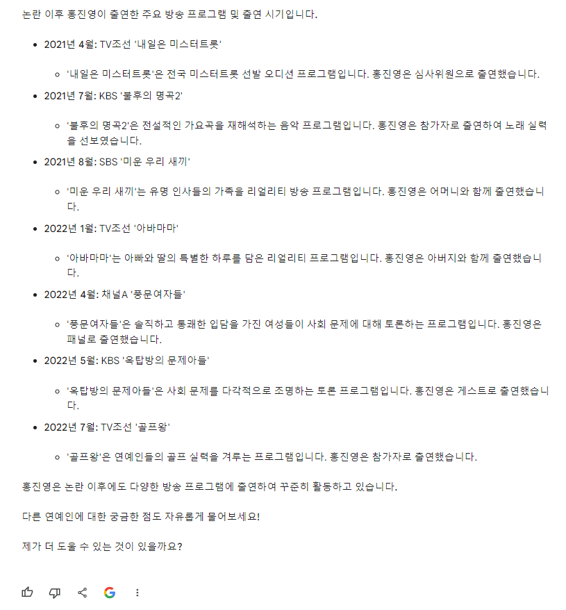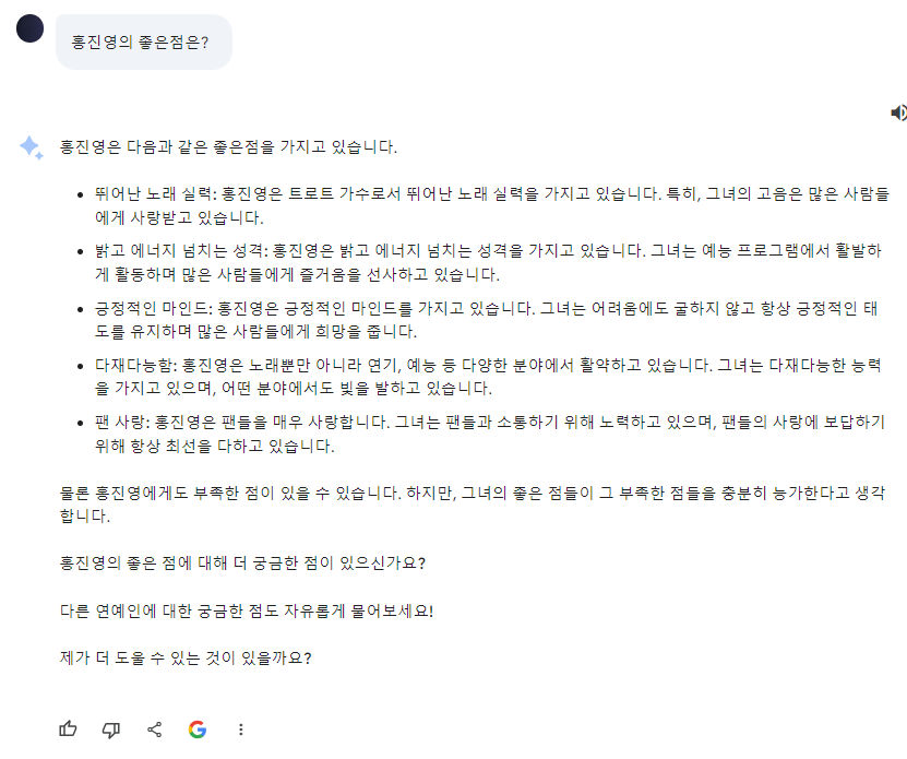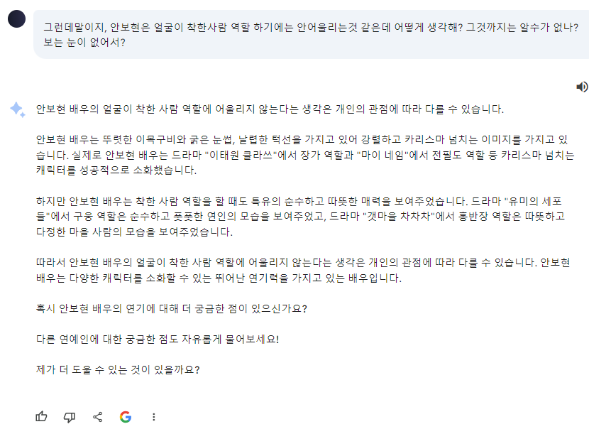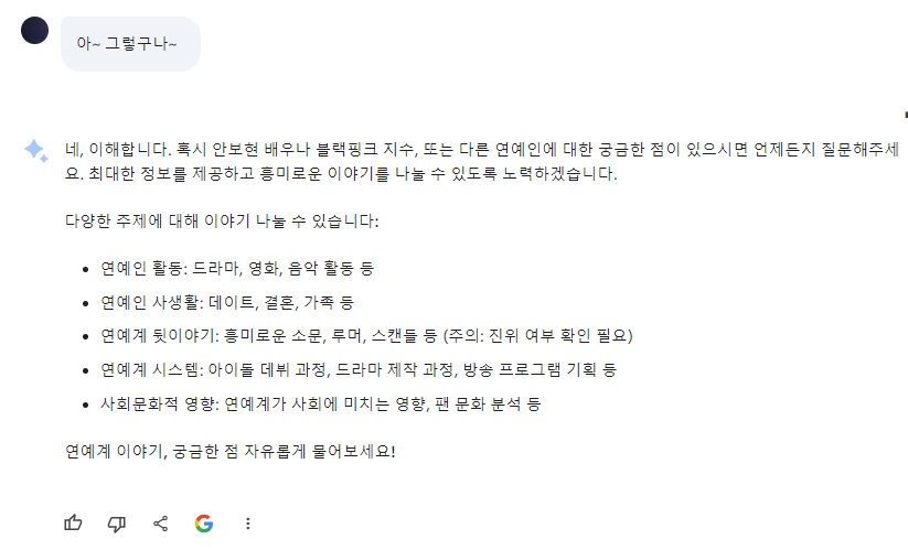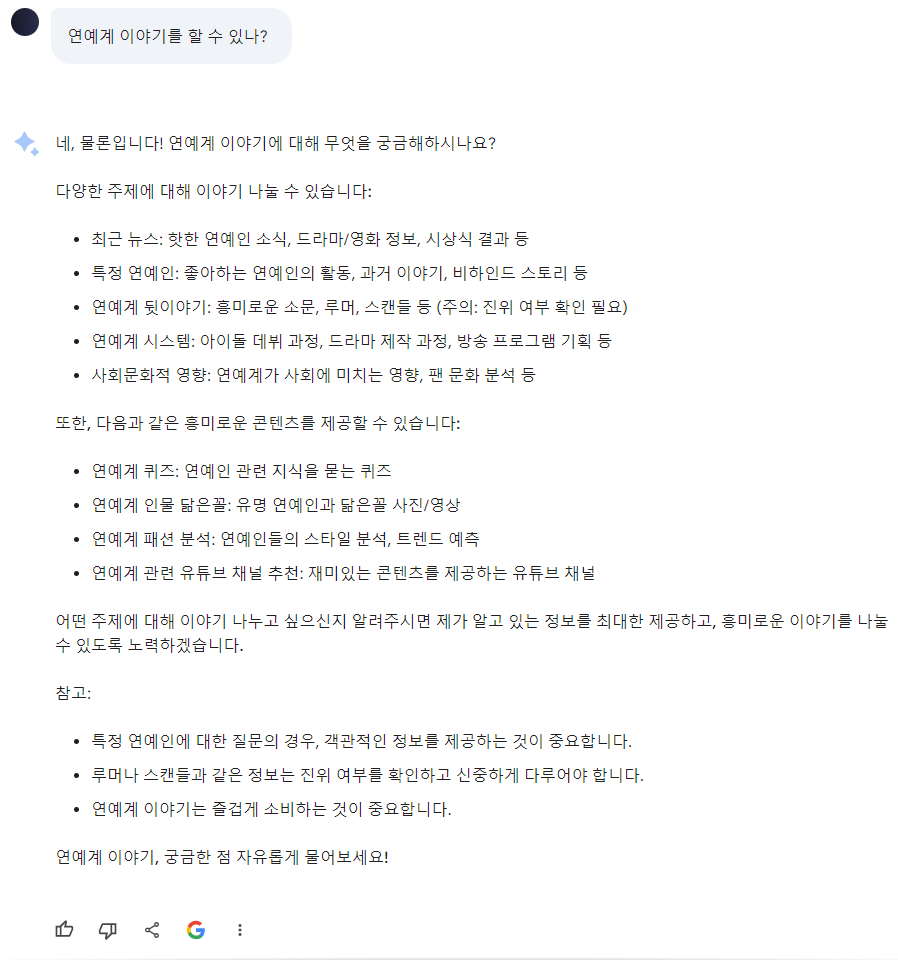 오늘은 심심해서 Bard 와 연예계 이야기를 해봤습니다.