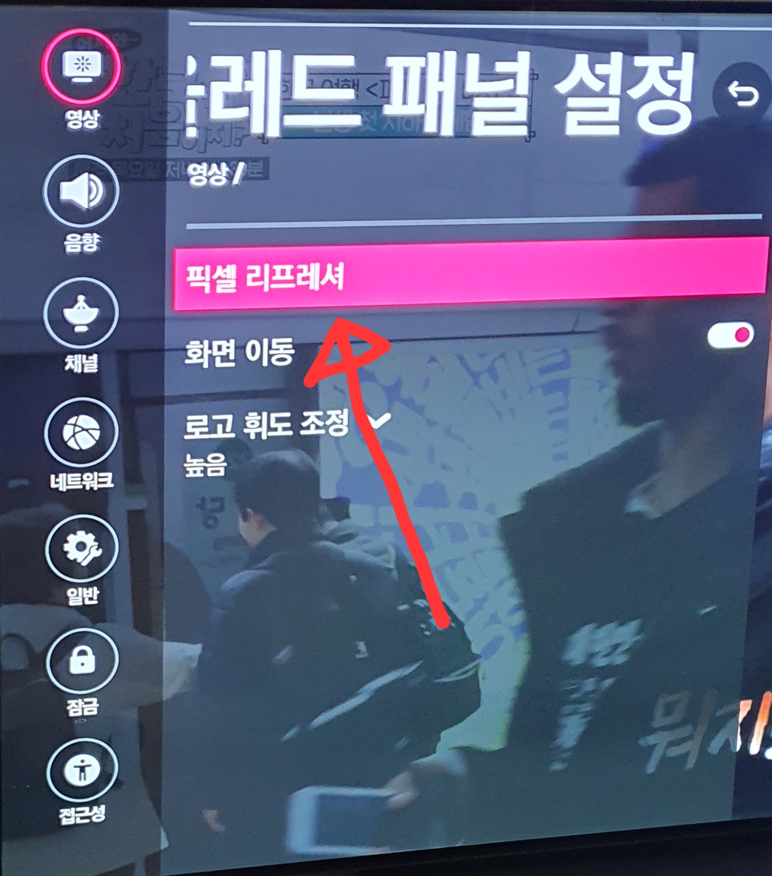LG에서는 이런 현상을 방지하기... 가 아니라 되살리기 위해서 픽셀리프레셔라는 기능을 제공하고 있습니다.