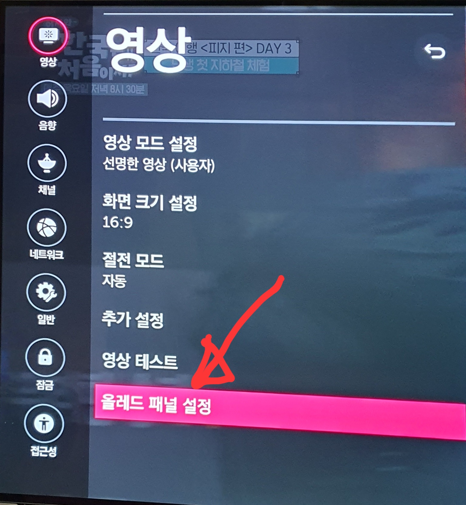 다른 회사 티비에서는 당연히 이 메뉴가 이렇게 보이지는 않을 거예요. 이건 LG티비 메뉴니까요.