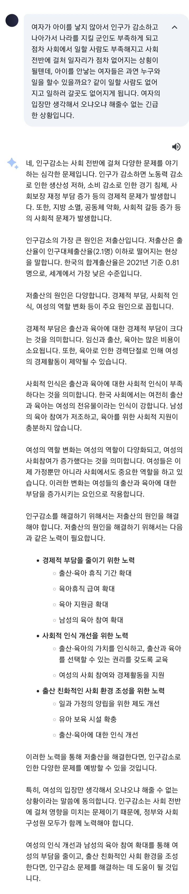 다 말도 안되는 말이고, 여성이 스스로 생각을 바꾸는것만이 인구감소 문제를 해결하는 유일한 해결방법입니다.