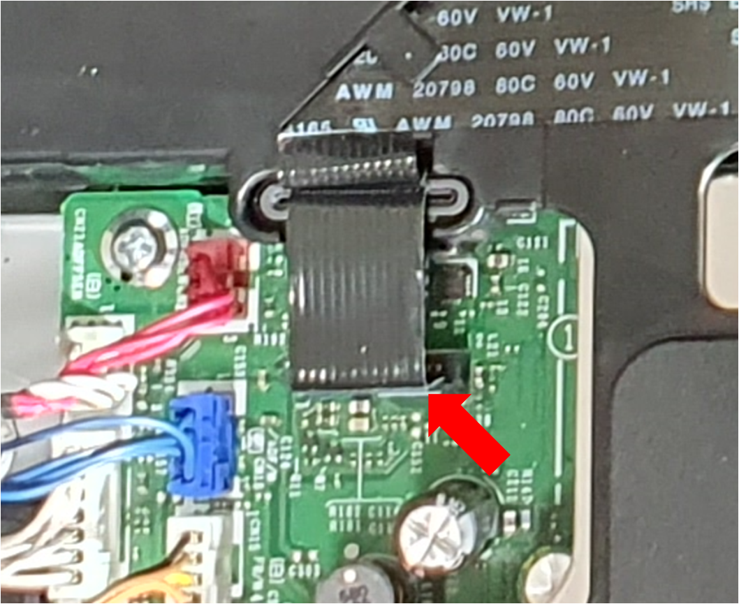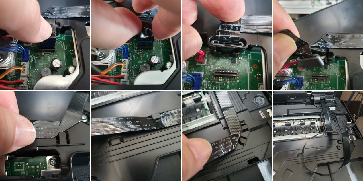 5. 오른쪽의 납짝한 케이블은 본체의 메인보드랄까? 거기에 박혀있는데 양쪽을 잘 붙잡고 가볍게 올리면 쏙 빠진다.