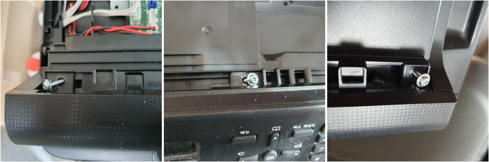 검정색 나사는 앞쪽에 세개 왼쪽 뒤쪽에 한개 박혀있고, 은색 나사는 중앙 부분에 박혀있다.