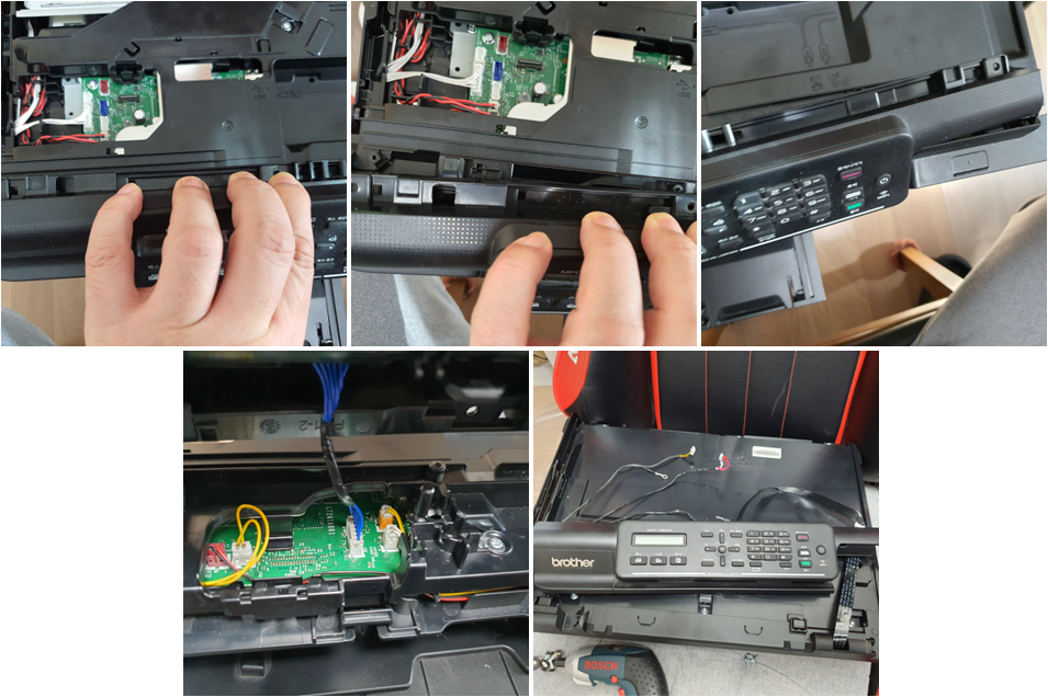 제어판을 뜯기 전에 잉크통 커버를 먼저 뽑아내야 한다.